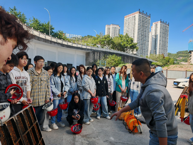 为深化本科工程教育综合改革、落实OBE理念,学院于2025年10月20至24日,组织2024级工程造价专业全体学生开展为期一周的“工程认识实习”实践活动。通过现场参观重庆市规划馆、“和悦府”第四代建筑、学校在建宿舍楼、涪陵建设工程质量监督检测中心有限公司实验室、“816”地下人工洞体等项目,进一步提升实践教学育人成效。