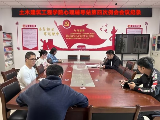 6月9日,土木建筑工程学院于至静楼(南)504召开心理辅导站第四次工作例会。本次会议由学院党委书记孙华银主持,全体辅导员共同参与,会议围绕“心理辅导站工作总结与问题剖析”主题展开,旨在分析当前挑战,明确下一步发展方向。