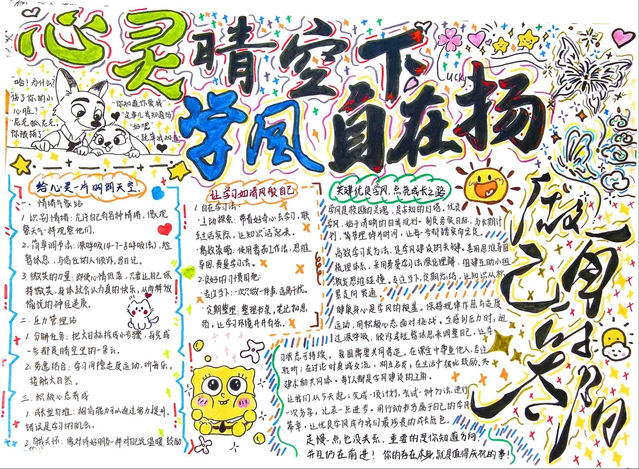 为融合学风建设与心理健康教育,土木建筑工程学院近日举办“学风护航成长,心理赋能前行”主题手抄报活动,全院学生踊跃参与,以A3作品展现学习方法与心理调适技巧。同学们围绕“勤学+润心”主题,用漫画、思维导图等形式呈现学习规划、压力缓解等内容,作品兼具创意与温度。经初审、复审,最终评出一等奖2名、二等奖3名、三等奖5名,优秀奖4名。优秀作品已线下展示。